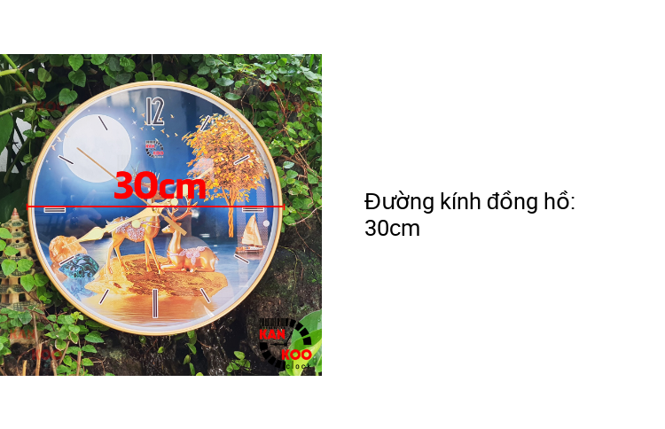 Với đường kính 30cm, đồng hồ treo tường này có kích thước vừa phải, phù hợp với nhiều không gian như phòng khách, phòng ngủ, phòng làm việc, hay phòng họp. Bạn có thể treo nó trên tường hoặc đặt nó trên một giá đỡ để tạo điểm nhấn trang trí độc đáo.