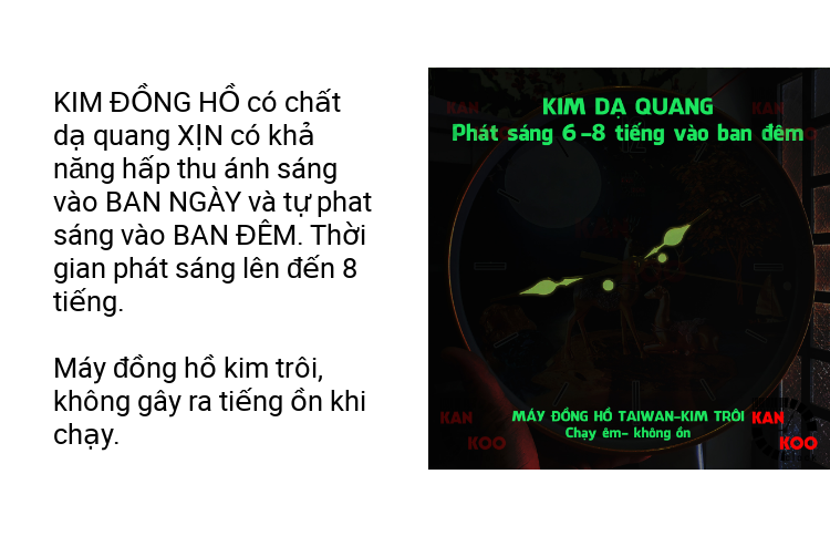 KIM ĐỒNG HỒ DẠ QUANG có khả năng hấp thụ ánh sáng vào ban ngày và tự động phát sáng vào ban đêm, giúp bạn dễ dàng nhìn giờ hơn khi không còn ánh sáng điện.