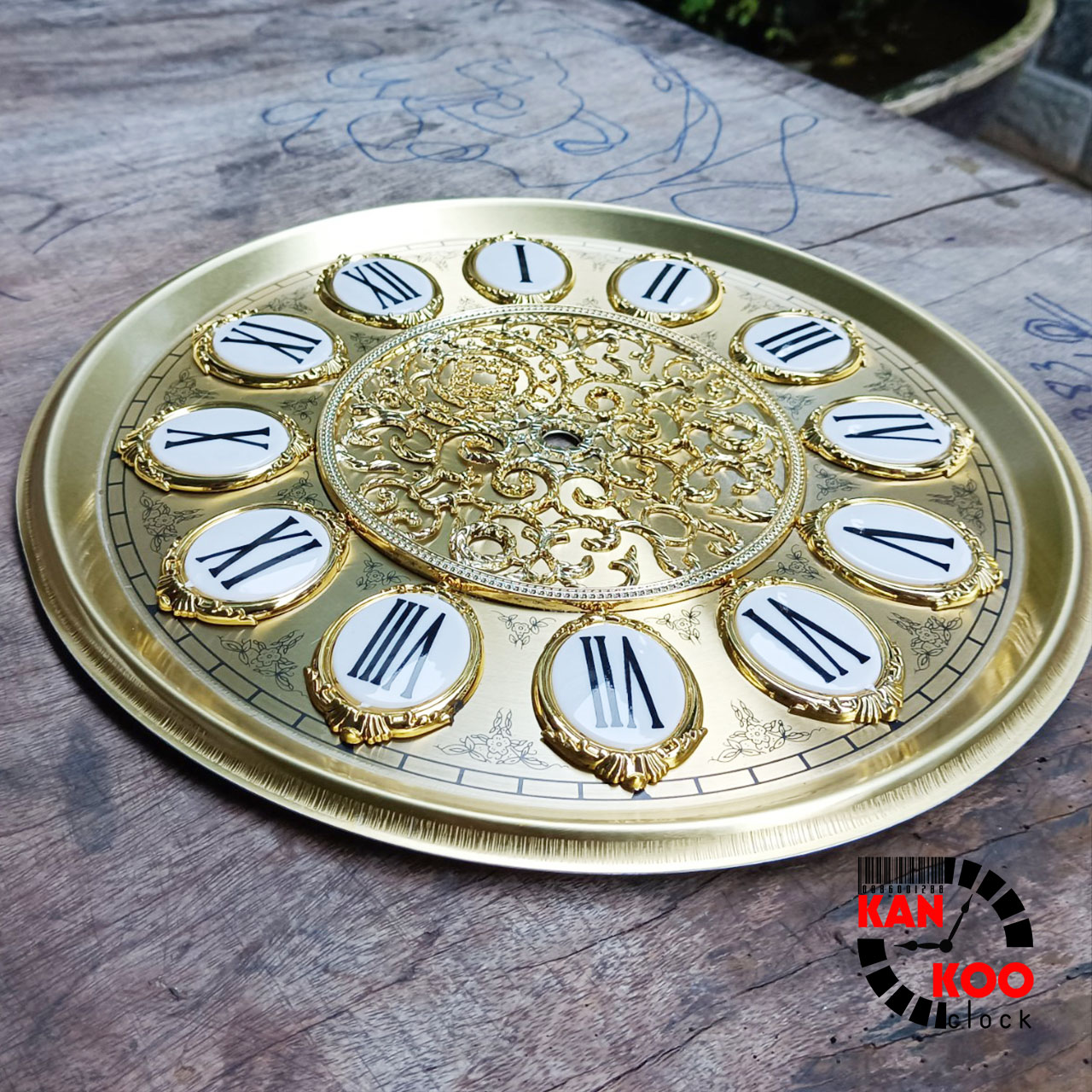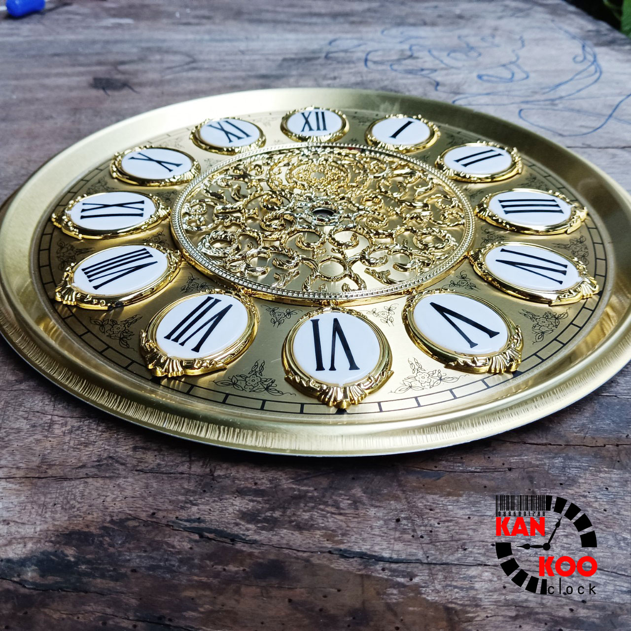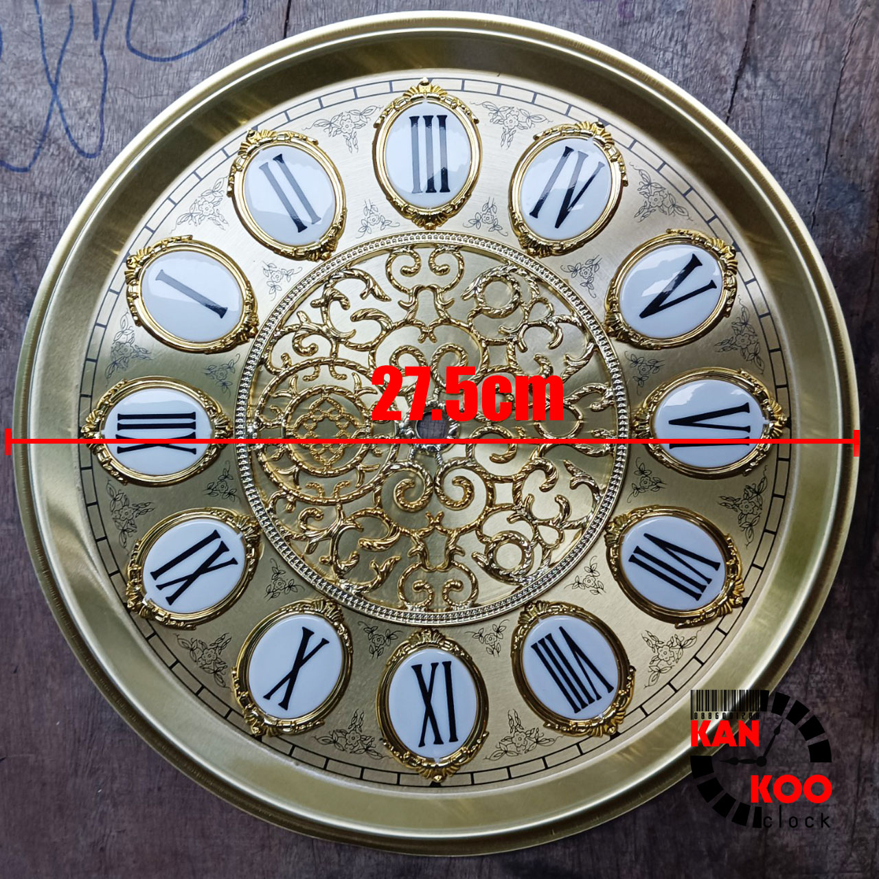 Mặt nhôm lắp đồng hồ tủ đứng-đồng hồ gỗ lũa đường kính 27.5cm (mặt ngọc) số nổi kiểu La Mã